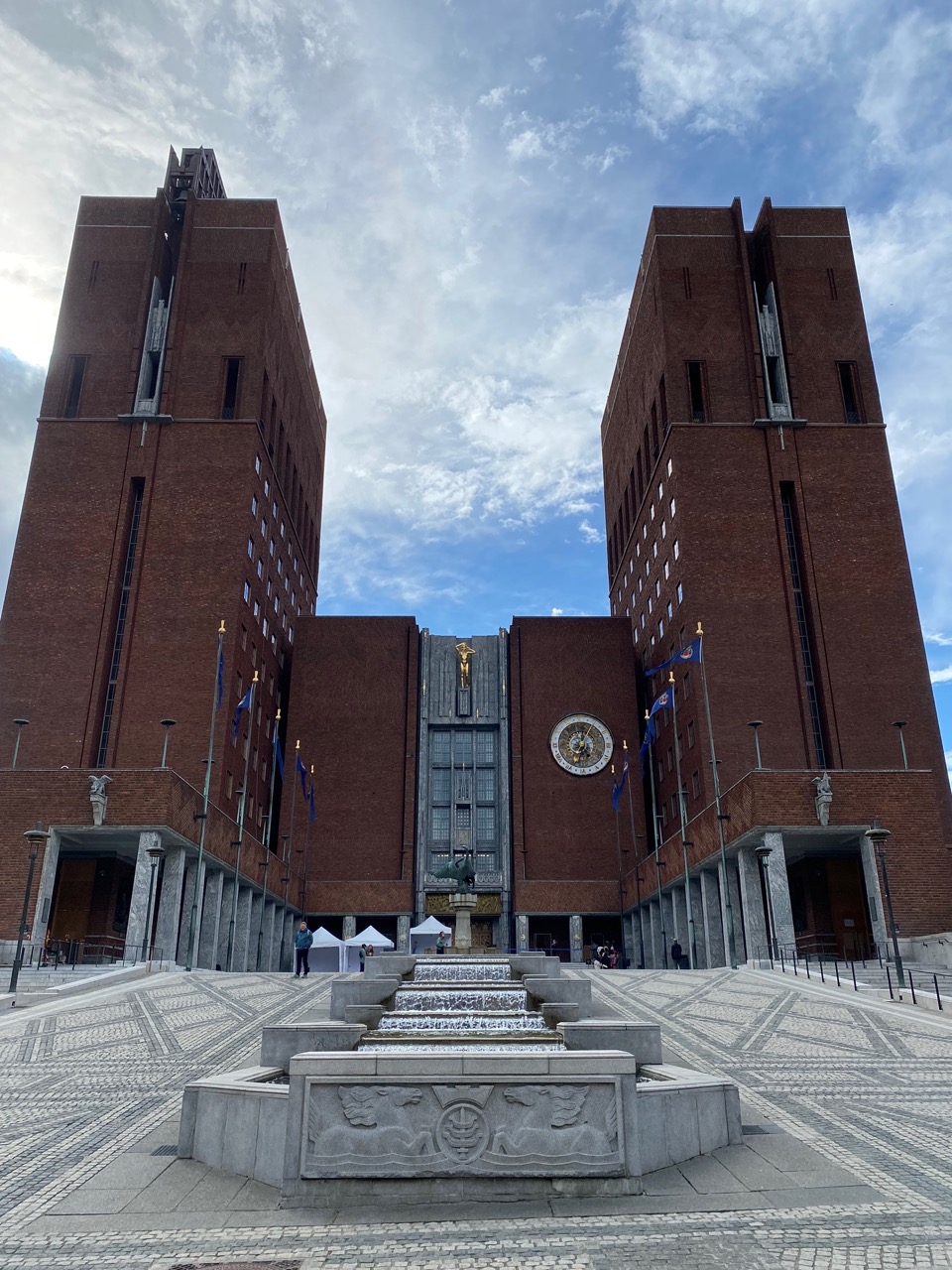 Oslo City Hall (Rådhuset) is known for its distinctive twin towers and functionalist architecture. Completed in 1950, it serves as the administrative center of the city and the venue for the annual Nobel Peace Prize ceremony. All other Nobel Prizes—i.e., physics, chemistry, medicine, literature, and economics—are awarded in Stockholm, Sweden.