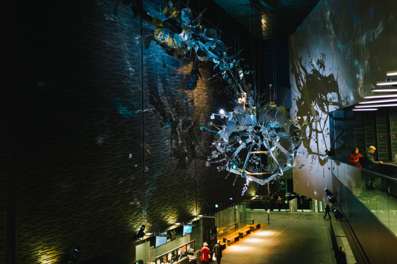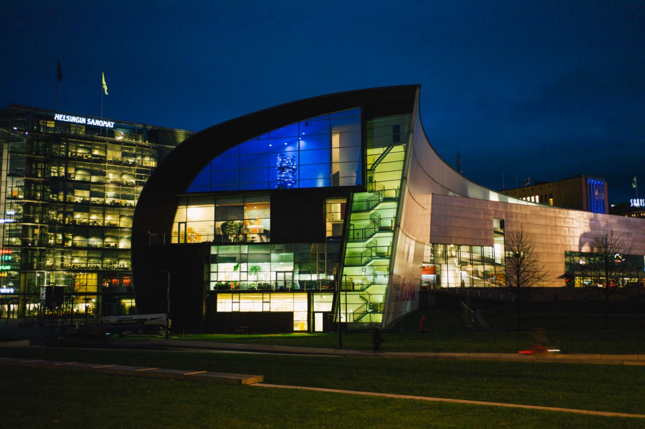 The Musiikkitalo, or Helsinki Music Centre, is a modern architectural gem in the heart of Helsinki, dedicated to music and performance. Its sleek glass façade and striking design make it stand out even among the city’s historic buildings. Inside, of the highlights is the large, captivating art piece that dominates the interior, drawing visitors’ eyes upward with its dynamic form and intricate details.